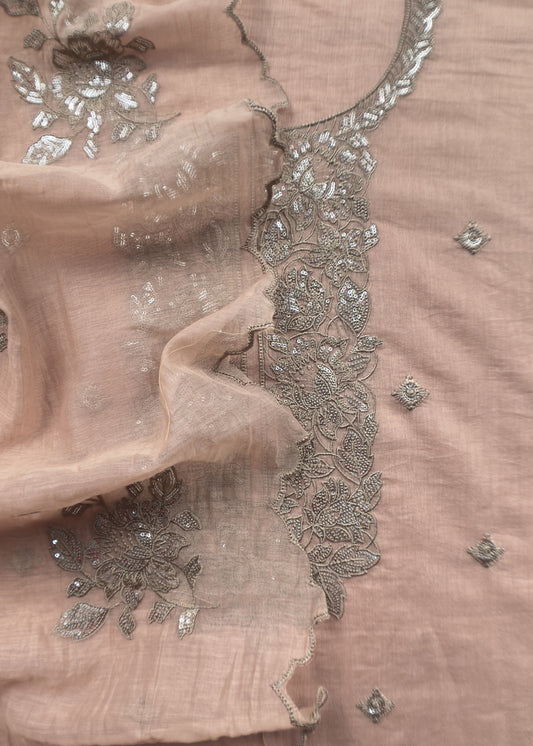 Pink Pearl Mul Suit Fabric With Bronze Sequin Embroidery