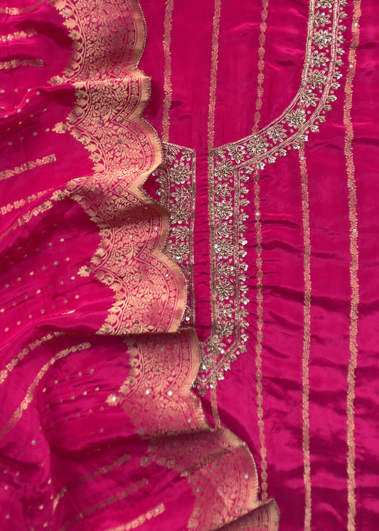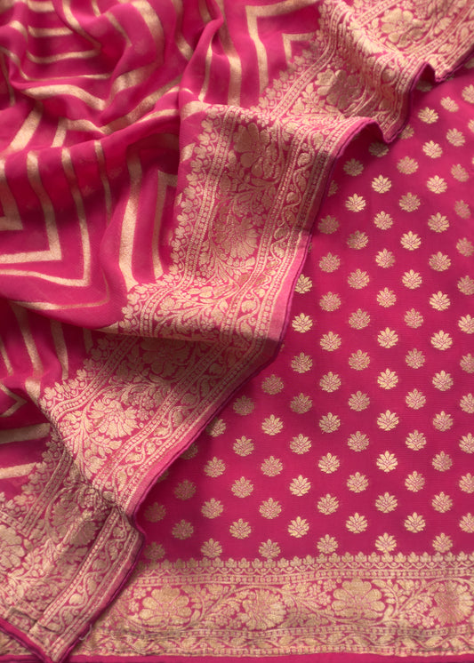 Pink Pure Banarasi Khaddi Georgette Unstitched Suit