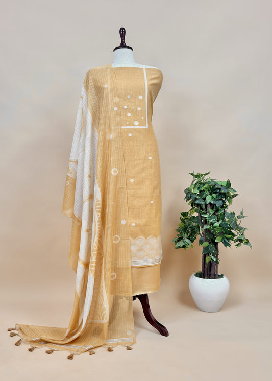 Yellow Linen Chanderi Suit With Jamdani Weaving