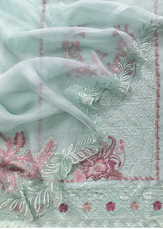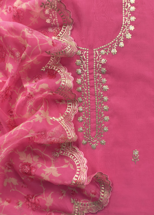 Pink Gotta-Patti Embroidered Organza Suit Fabric With Floral Digital Print Dupatta