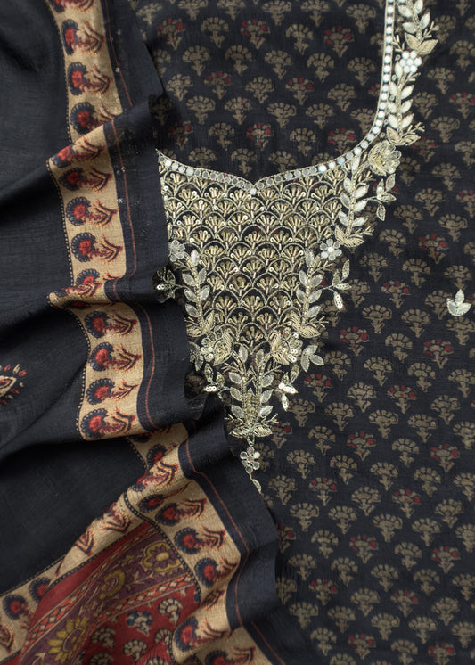 Black Ajrakh Gotta Patti Tussar Blend Suit Set
