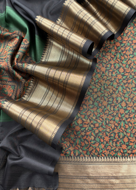 Black Pure Silk Suit with Meenakari multicolour weaving