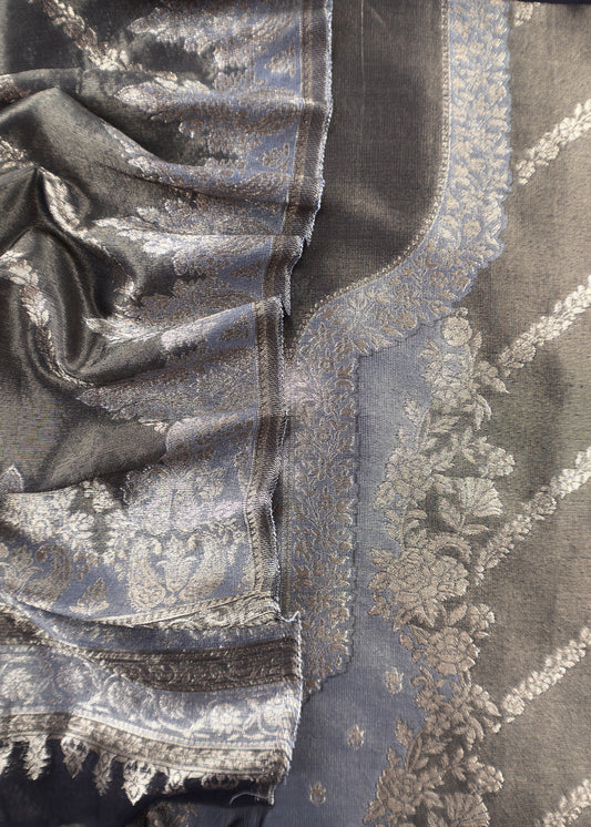 Charcoal Grey Pure Tissue Silk Unstitched Suit With Zari Weaving