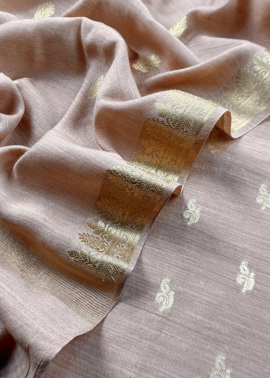 Beige Handloom Munga Silk Suit With Zari Weaving