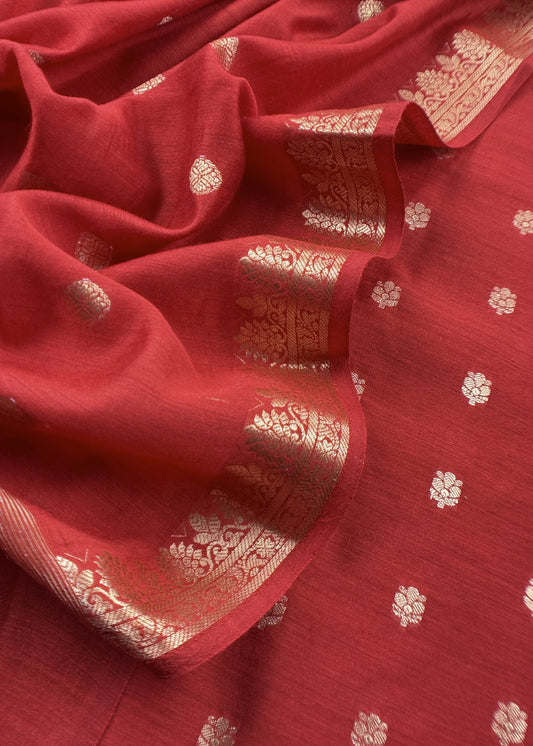 Red Banarasi Chanderi Suit With Dupatta