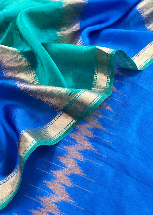 Kalasheel Luxe Royal Blue Chiniya Silk With Gold Ikkat Weave
