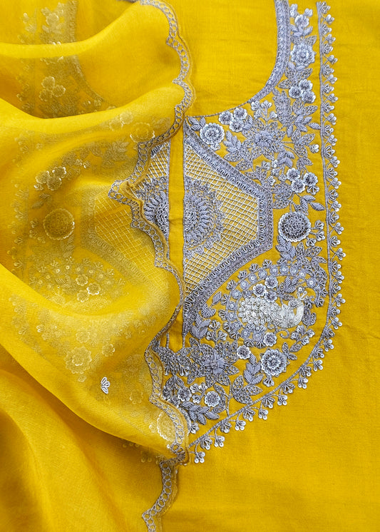 Yellow Varanasi Silk Kurta And Kora Silk Dupatta With Dabka Dori Hand Work With Woven Details