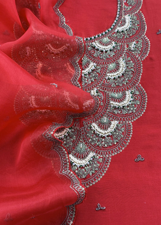 Burnt Red Varanasi Silk Kurta and Kora Silk dupatta with Dabka Dori Hand work with Woven details