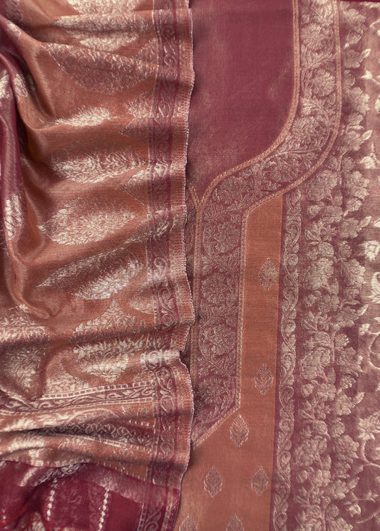 Rust Pure Tissue Silk Unstitched Suit With Zari Weaving