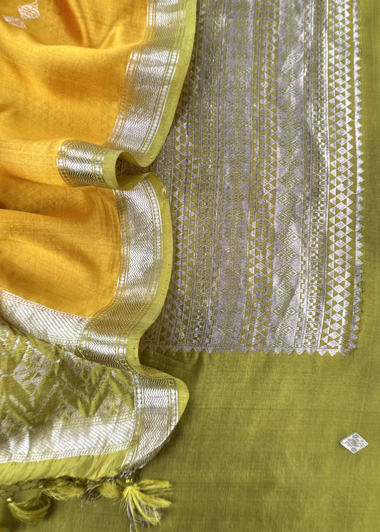 Mehndi Green Handloom Banarasi Silk Kurta And Kora Silk Dupatta With Kadwa Weaving