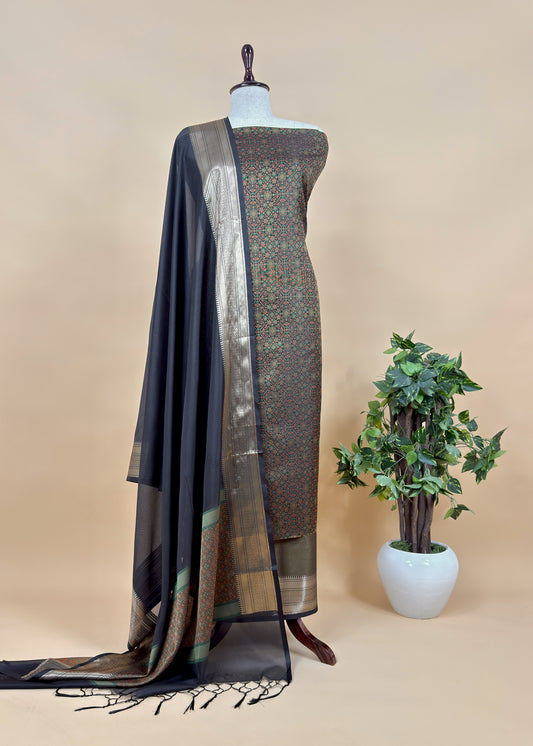 Pure Unstitched Handloom Banarasi Chanderi Suit Brushprint Dupatta