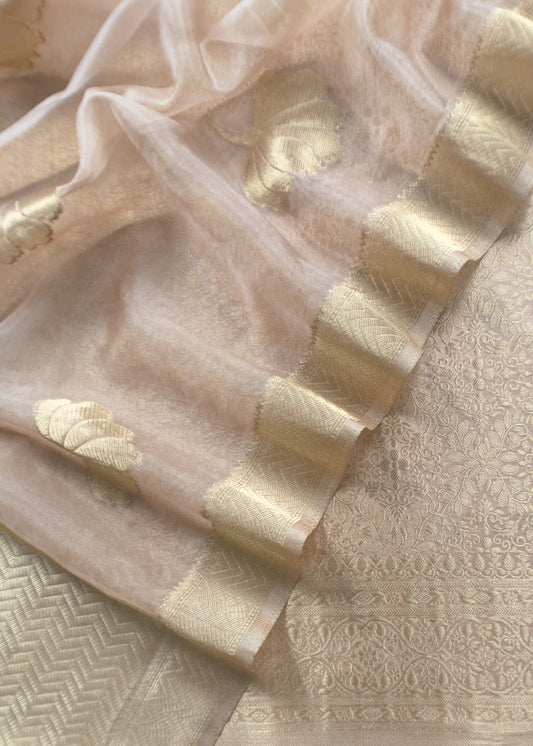 Beige Jamdani Woven Unstitched Suit With Paithani Work