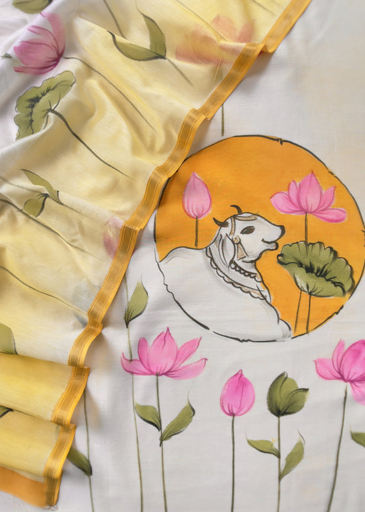 Yellow Hand painted Cow Suit In Maheshwari