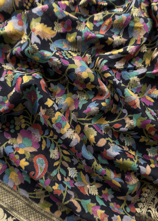 Sold outBlack Handwoven Kani Zari Silk Suit
