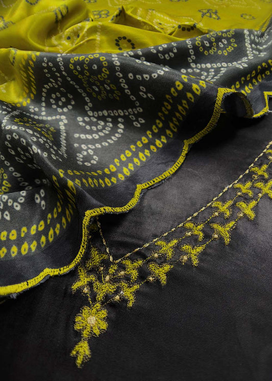 Black Gajji Silk Suit With Contrast Bandhani Dupatta