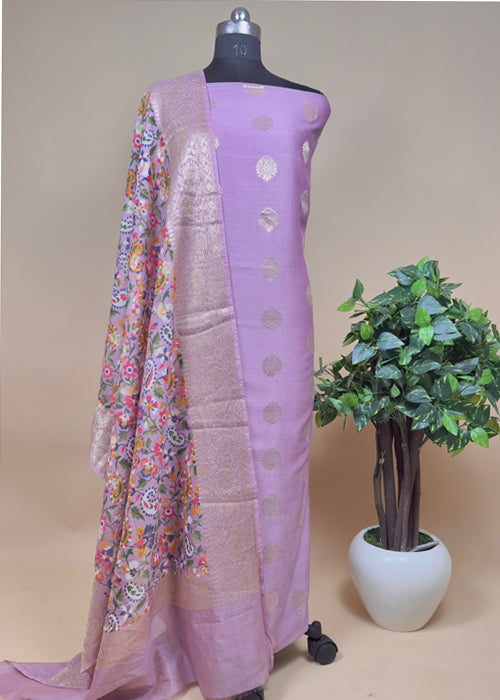 Black Pashmina Kani Silk Unstitched Suit with Dupatta