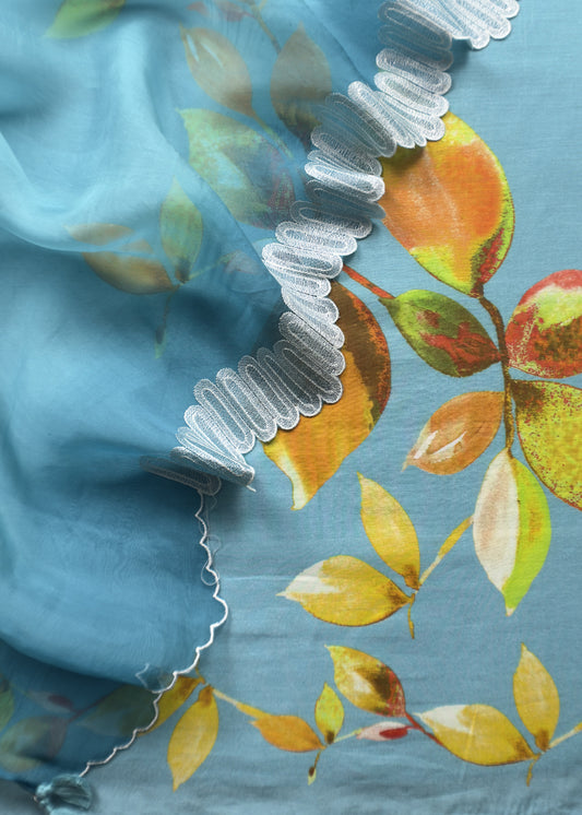 Pacific Blue Designer Digital-Print Chanderi Summer Suit With Organza Dupatta