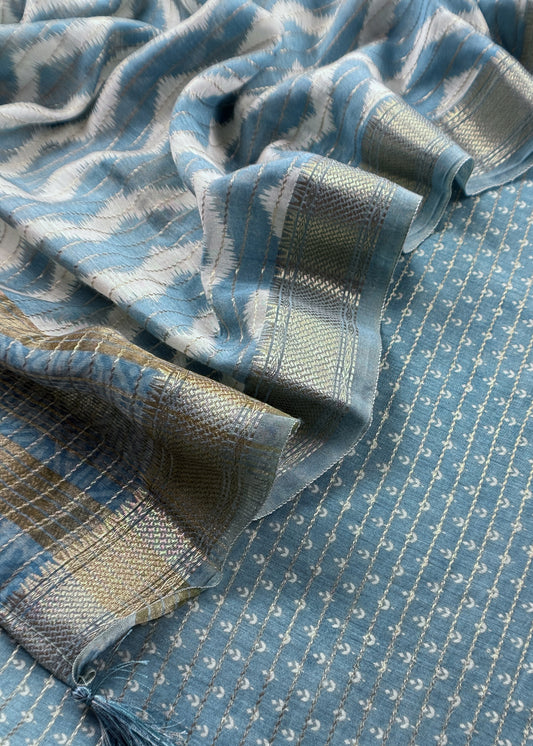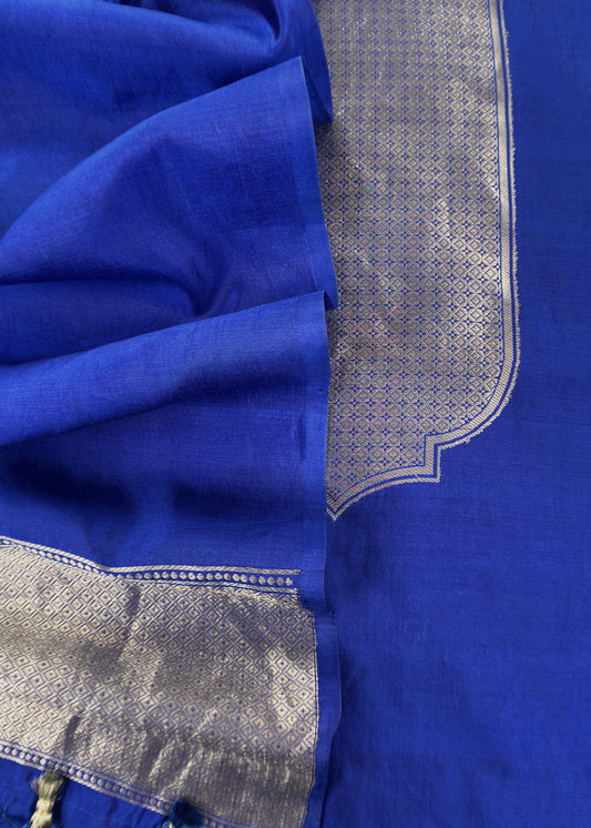 Blue Banarasi Chanderi Suit With Dupatta
