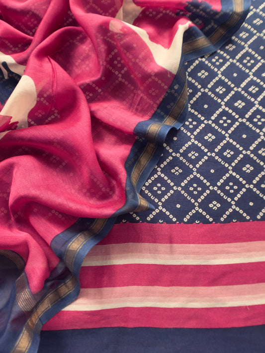 Navy Blue Bandhani Maheshwari Silk Suit With Dupatta