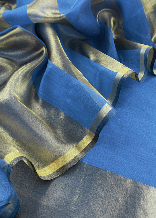 Chidiya Midnight Blue Handloom Kora Silk Suit With Gold Tissue Appliqué Work