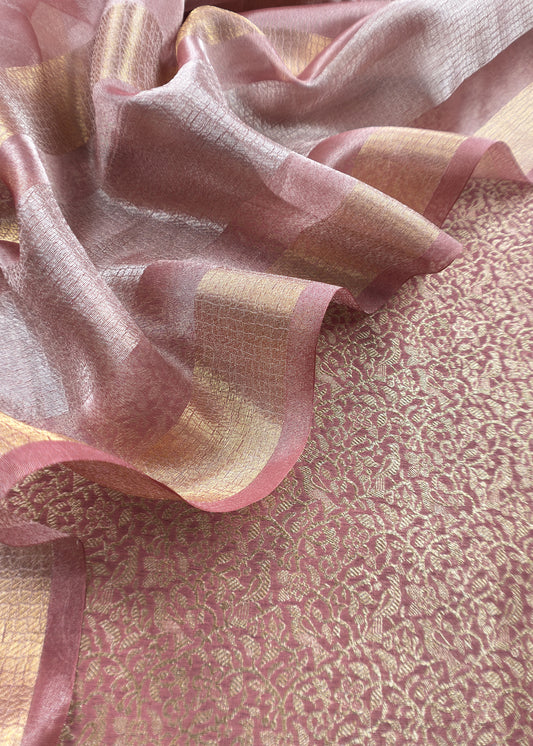 Taffy Pink Designer Pure Brocade Silk kurta And Tissue Silk Dupatta