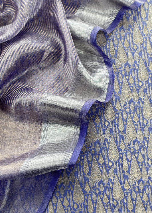 Lustre Purple Designer Pure Brocade Tissue Silk Suit Fabric