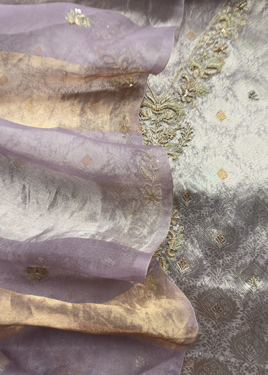 Purple Varanasi Brocade Silk Kurta And Double Panel Tissue Dupatta With Handwork