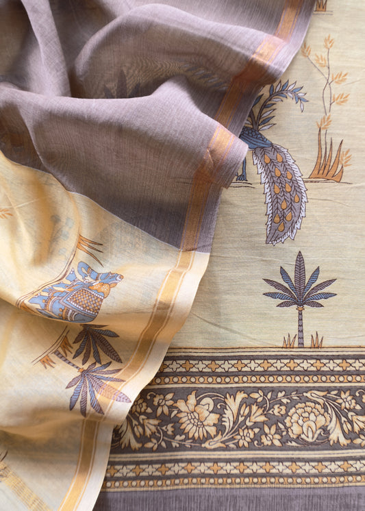 Yellow And Brown Shikagarh Maheshwari Silk Suit