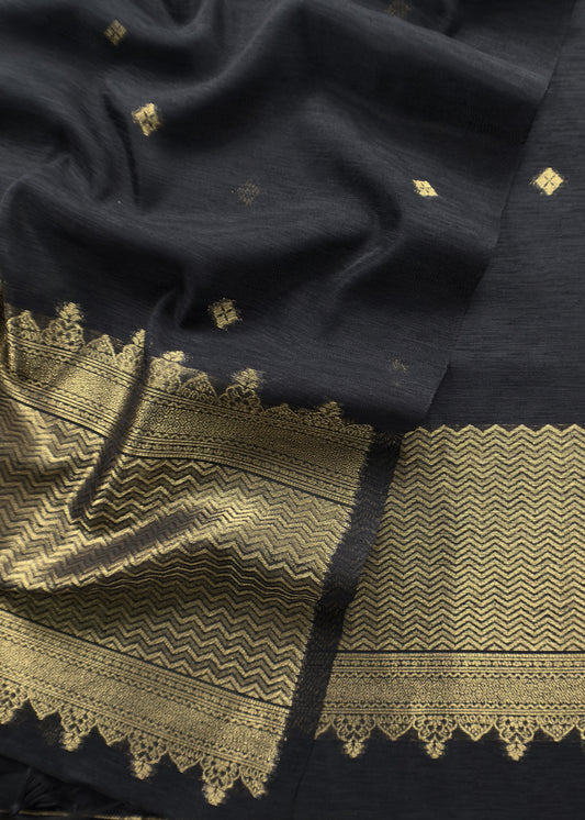 Black Chanderi Unstitched suit with Gold zari Jamdani weaving