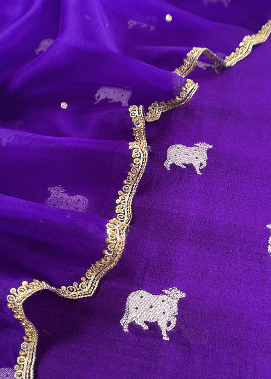 Purple Pure Chiniya Silk Kurta And Kora Silk Dupatta with Handwork