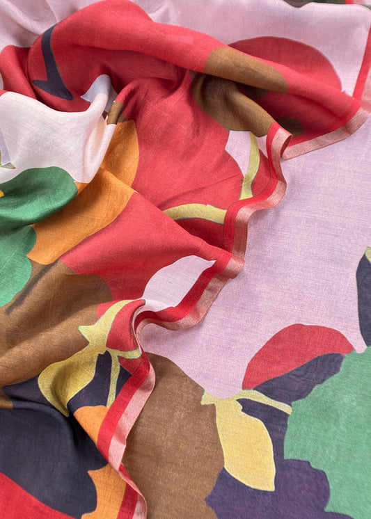 Reds And Pinks Abstract Pure Chiniya Silk Unstitched Suit Fabric