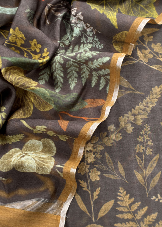Forest Browns Abstract Pure Chiniya Silk Unstitched Suit Fabric