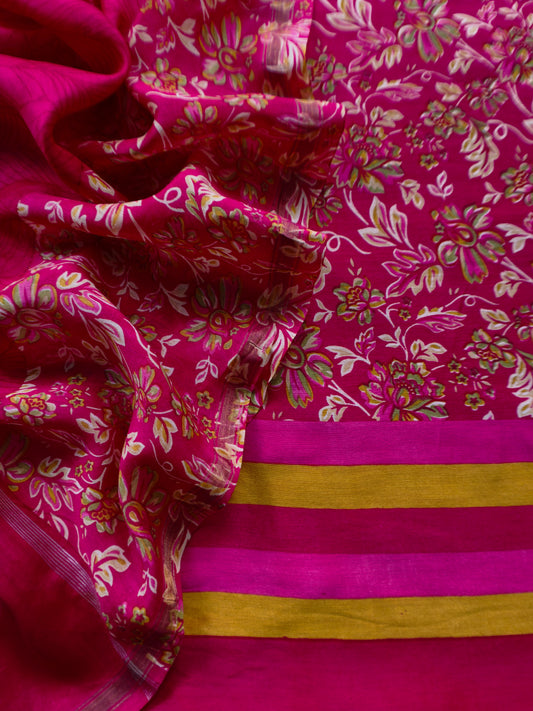 Pink Floral Print Pure Maheshwari Silk Suit With Dupatta