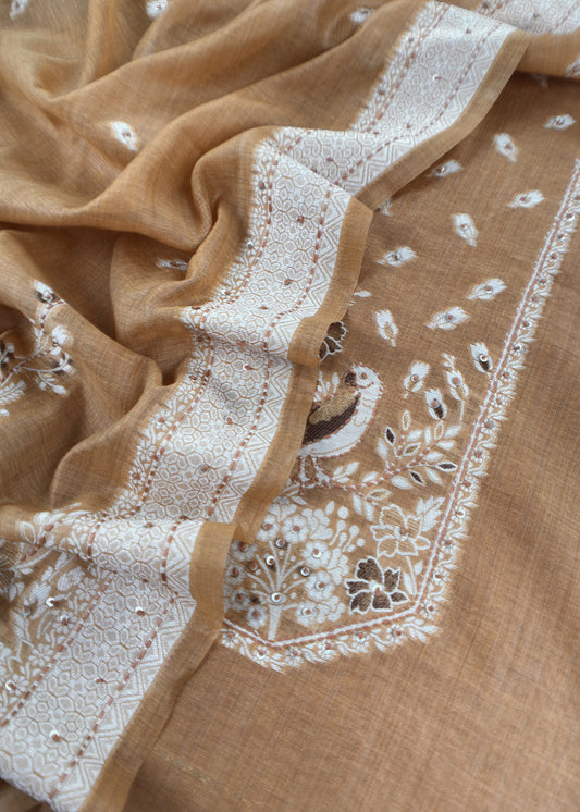 Mustard Chanderi Linen Suit With Jamdani Weaving
