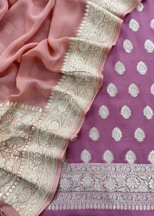 Orchid Pink Handloom Khaddi Georgette Suit Fabric With Zari Weaving