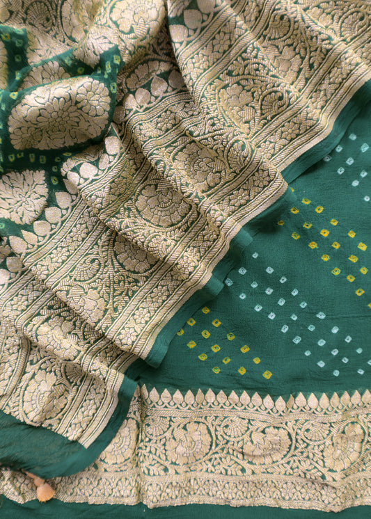 Green Pure Khaddi Georgette Suit Fabric With Gharchola Bandhani Dupatta