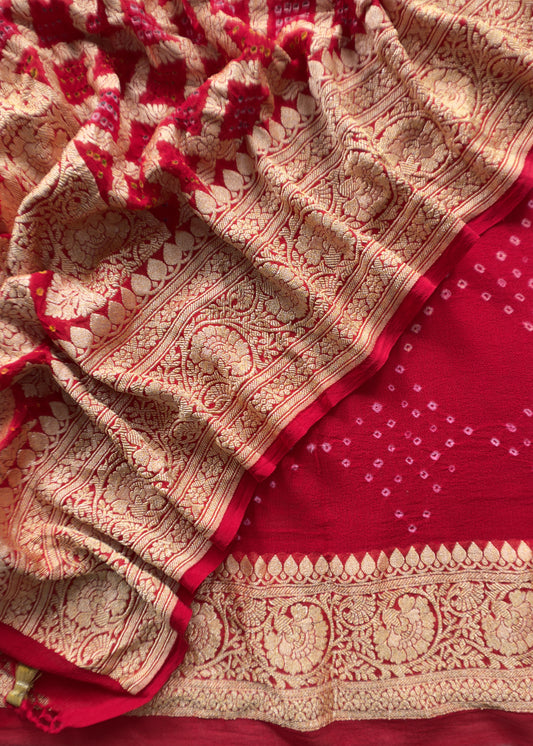 Red Pure Khaddi Georgette Suit Fabric With Gharchola Bandhani Dupatta