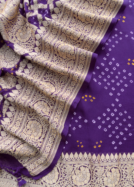 Blue Banarasi khaddi georgette unstitched Dupatta suit