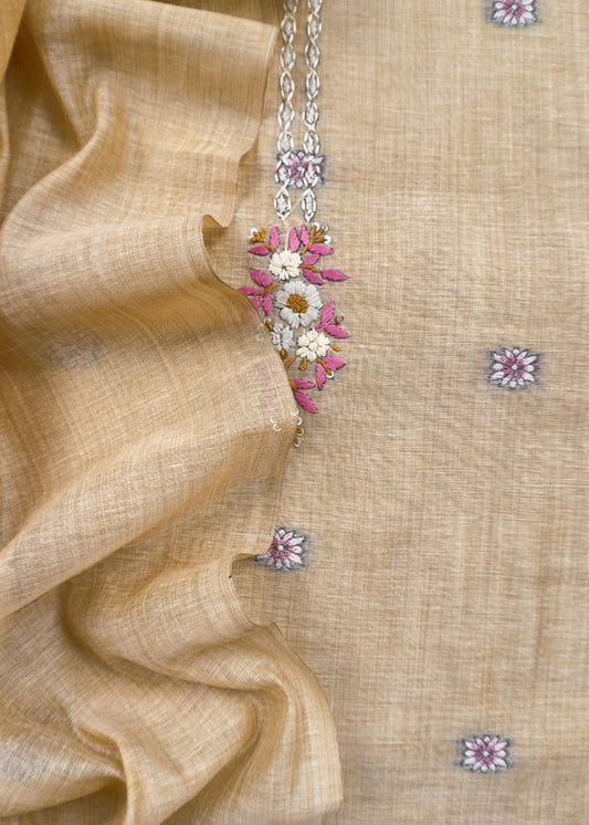 Floral Jamdani Weave Unstitched Chanderi Suit
