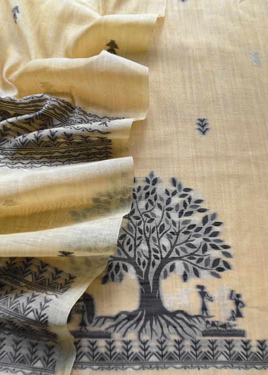 Yellow Jamdani Woven Unstitched Suit With Paithani Work
