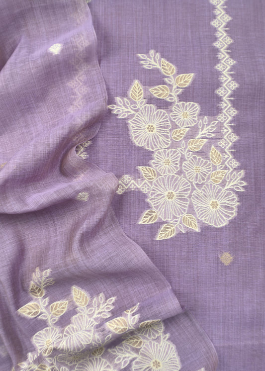 Lilac Jamdani Weaved Suit Fabric In Linen Chanderi