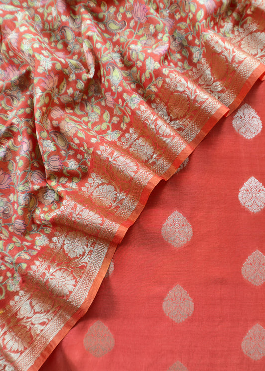 Orange Banarasi Suit With Kalamkari Dupatta