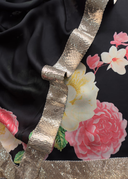 Rohit Bal Floral Digital Print Pure Satin Silk Dupatta-Suit With Laces
