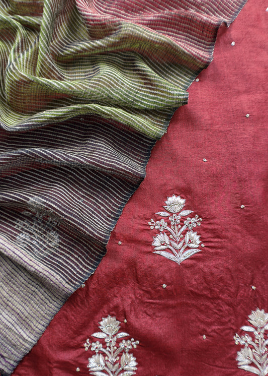 Sahiba 2025 Dark Rust Red Handloom Desi Tussar Kurta With Zardosi Work And Ghicha Tussar Dupatta