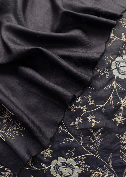 Sahiba 2025 Charcoal Black Handloom Desi Tussar Suit With Pitta And Appliqué Work