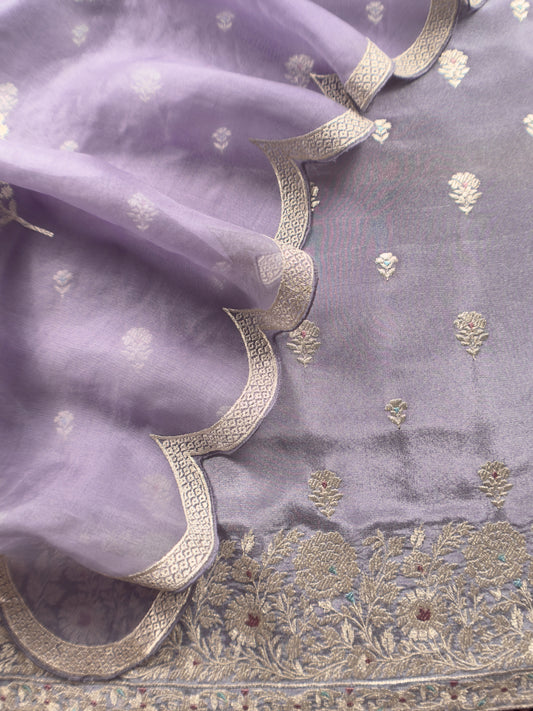 Light Blush Pink Kalasheel Luxe Handloom Organza Suit With Handwork