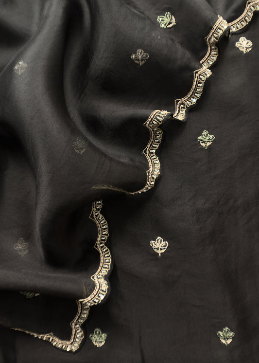 Kalasheel Luxe Midnight Black Handwoven Organza Suit With Hand work