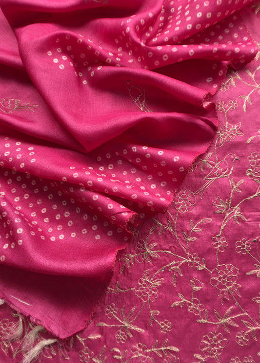 Sahiba 2025 Rani Pink Handloom Desi Tussar Kurta With Pitta Work And Bandhani Dupatta