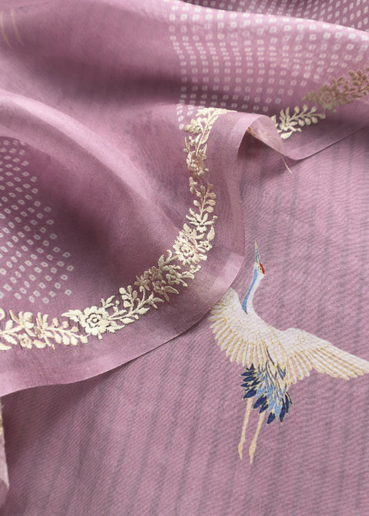 Mauve Pure Organza Silk Suit With Bandhani Print Dupatta