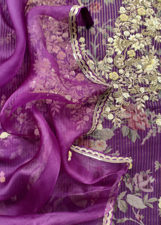 Kalasheel Luxe Deep Violet Pure Organza Suit With Zardosi And Dabka Handwork